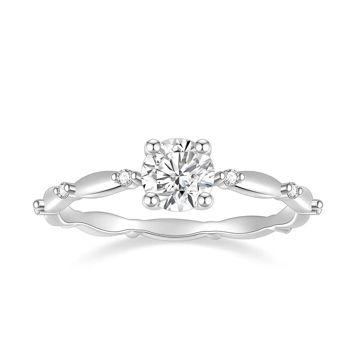 Round Cut Moissanite Engagement Ring in Sterling Silver