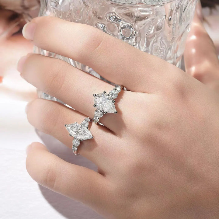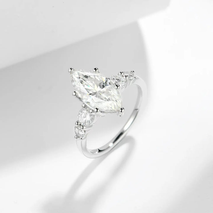 Product Snapshot: 3CT, Marquise Cut, VVS1 Clarity Moissanite, Side Stones Engagement Rings
