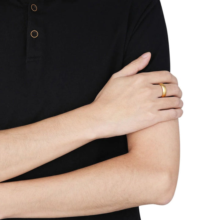 Looking for an alternative to a traditional solid gold ring? This 6mm men’s titanium band is crafted from pure titanium and finished with a premium 24K gold plating, offering the classic look of a plain gold wedding ring with the lightweight comfort and durability of titanium. A perfect choice for those seeking a minimalist plain gold band, a men’s titanium ring, or an affordable yet elegant 24K gold-plated wedding ring.