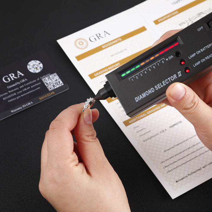 Each moissanite passes the diamond tester, comes with a GRA certificate, and is 100% conflict-free authentic sparkle you can trust.
