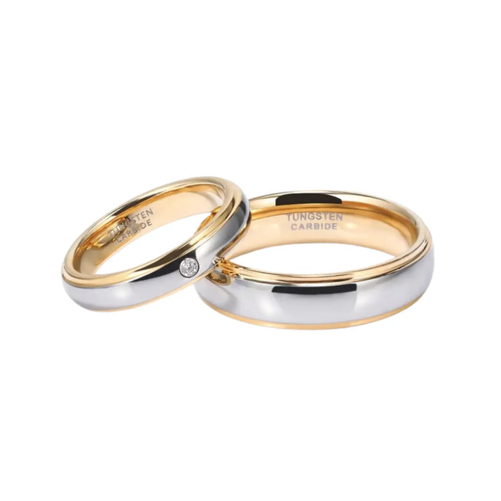 On your anniversary or engagement day, honor him or her with this exquisite band. Couple rings of this style are gold and silver two-toned. Fashioned in tungsten, this band features a high polished shank with a white clear gemstone inlaid. The ring's domed design is a thoughtful touch. Polished to a brilliant shine, this ring is a lovely symbol of your marriage commitment or your deep love for your companion. As for our quality, you don't need to be worried because all our products have reached the related standards. Taking into your interests into consideration, we offer you free shipping service and a beautiful packing box. If there exists any problems, please contact us and we will give you a satisfactory solution.